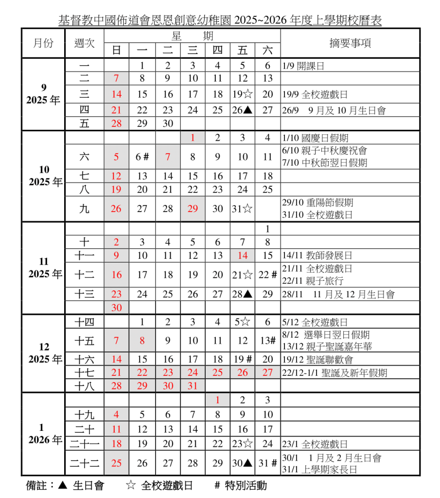 校曆表